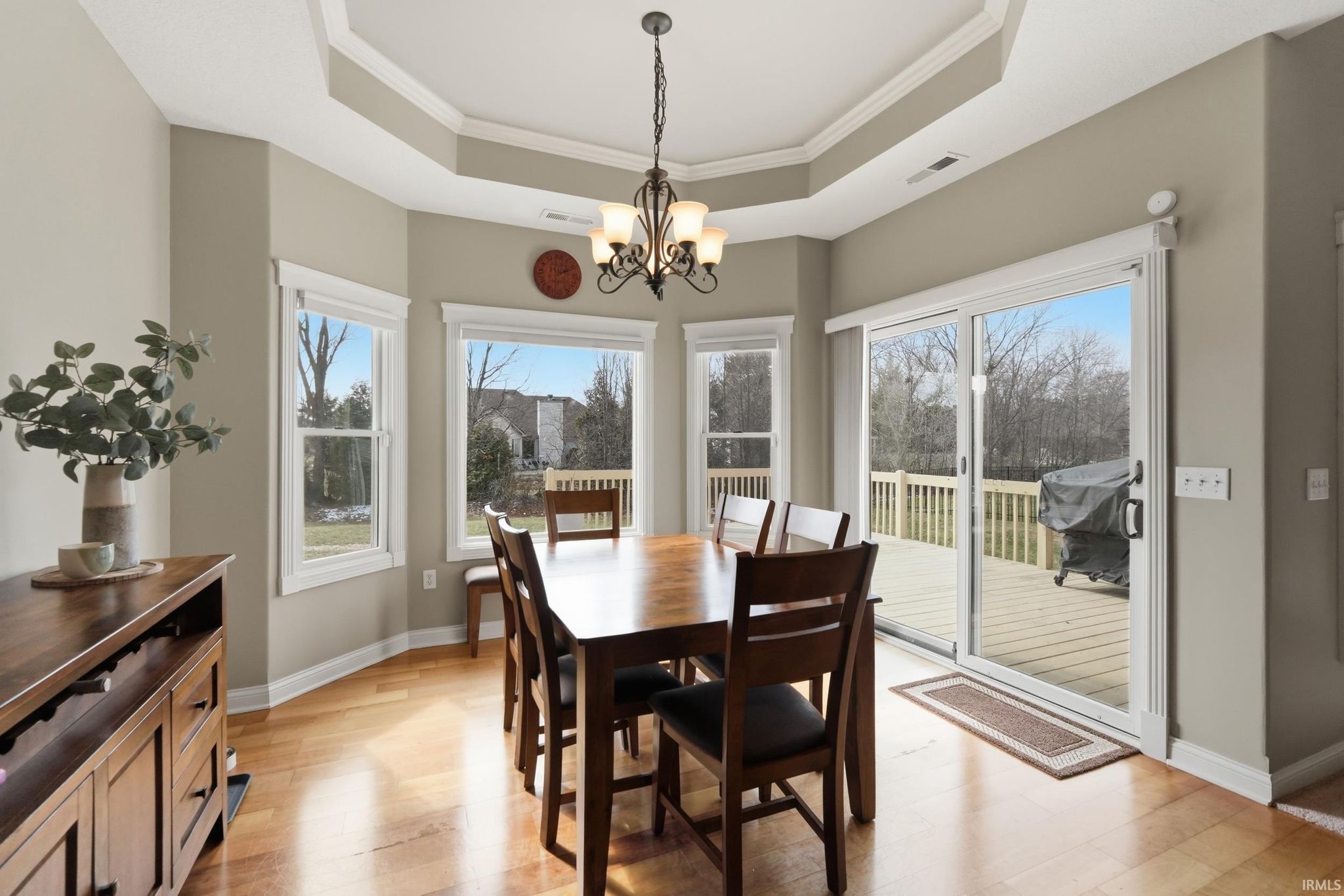 OPEN SUNDAY 2-4PM: Don't miss this ranch on a daylight basement located in the charming subdivision Eagle River off Dupont Rd/Highway 1 just East of Tonkel Rd. This 3 bedroom, 2 full and 2 half bath home features hardwood floors on the main level, an eat-in kitchen, breakfast nook, primary en suite with jetted tub, tiled walk-in shower, private stool and spacious closet. The living room is open to a formal dining room and features high ceilings, a gas fireplace and loads of natural light. Two additional bedrooms, a full bath, powder room and laundry with utility sink complete the main floor amenities. The daylight basement has a second large living area with hard surface flooring throughout, a private room with closet and window (not egress) and another half bath. The outdoor spaces include a covered front porch and a spacious deck in the back, perfect for entertaining or enjoying the views. Don't miss this turnkey, delightful home in the East Allen County school district.