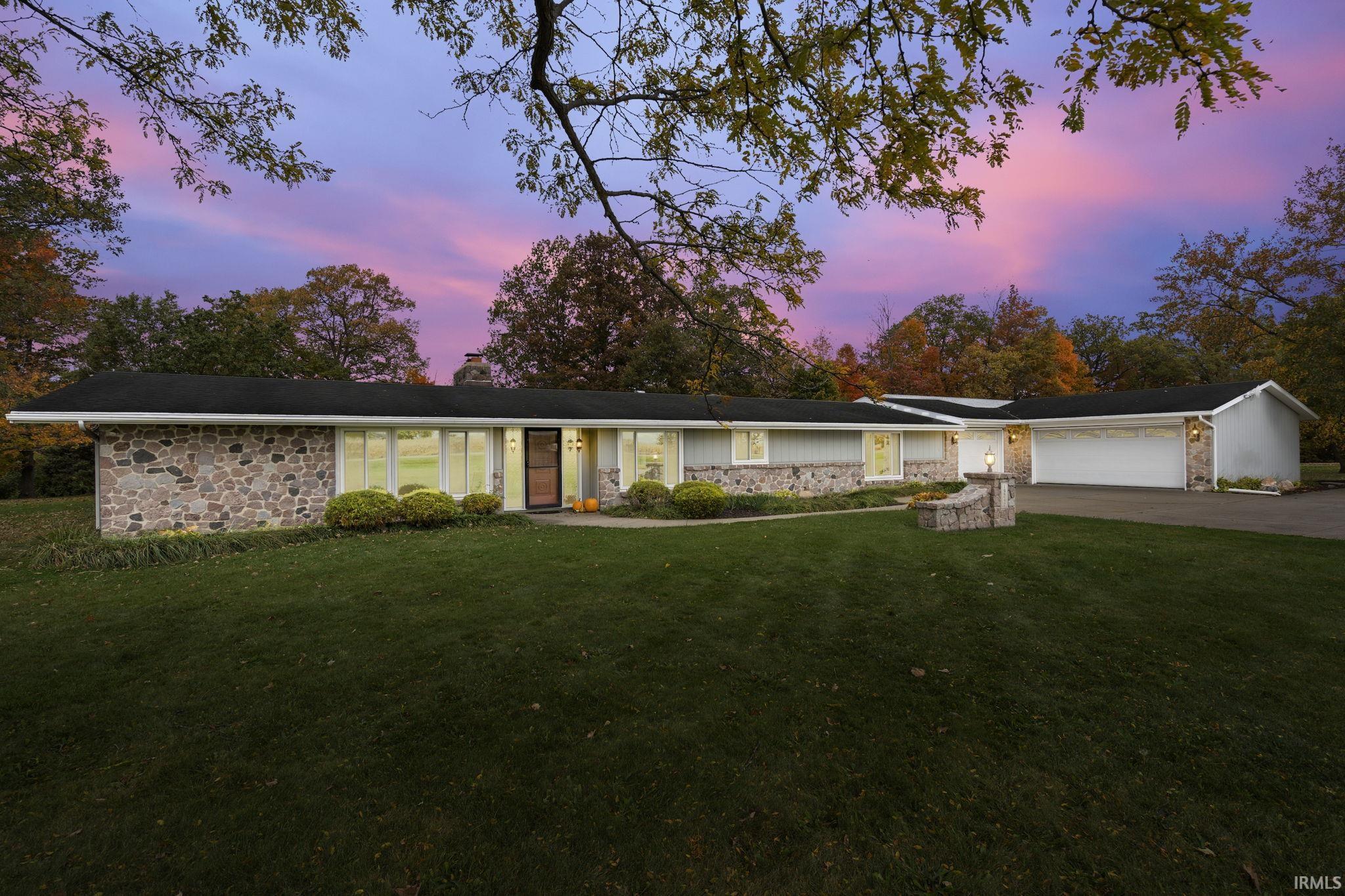 This beautiful riverfront property is on the market for the first time! Attractive stone and wood front, this property has wonderful appeal for any buyer desiring a 2+ acre lot, a sprawling 4 bedroom ranch, a 30 x 48 pole building, and an attached 3 car garage all on the high – bank of the Maumee river. The newly remodeled and move-in ready house is very open. The kitchen features Corian countertops and an island with roll-out drawers and a glide & slide enamel prep-board . LVP flooring throughout main living areas, and an attractive 2-way gas log fireplace. The split bedroom plan provides large bedrooms, two full bathrooms, plenty of storage, and beautiful views to the country setting. Trane furnace with humidifier/central air, 1 year old water heater, new well pressure tank in 2021, 5 year old water softener, lace ceilings, updated lighting and door hardware. There is an attached 3 car garage well supplied with electric, storage, floor drain, and retractable garage door screens, plus a large amount of driveway parking area. The 24 x 36 x 16 Outbuilding has a concrete floor with drain, large concrete apron on two sides with 2 large cages areas, 100 A Electric, 1 overhead door, and a man cave/she shed/ office. To further your outdoor enjoyment, there is a 16 x 22 Courtyard, a 23 x 9 patio, a gazebo and fire pit, herb and vegetable gardens ready for planting, and an apple and pear tree. Continuous blooming Yardscape from spring until fall with numerous varieties of trees, plants, and flowers. Wow!!