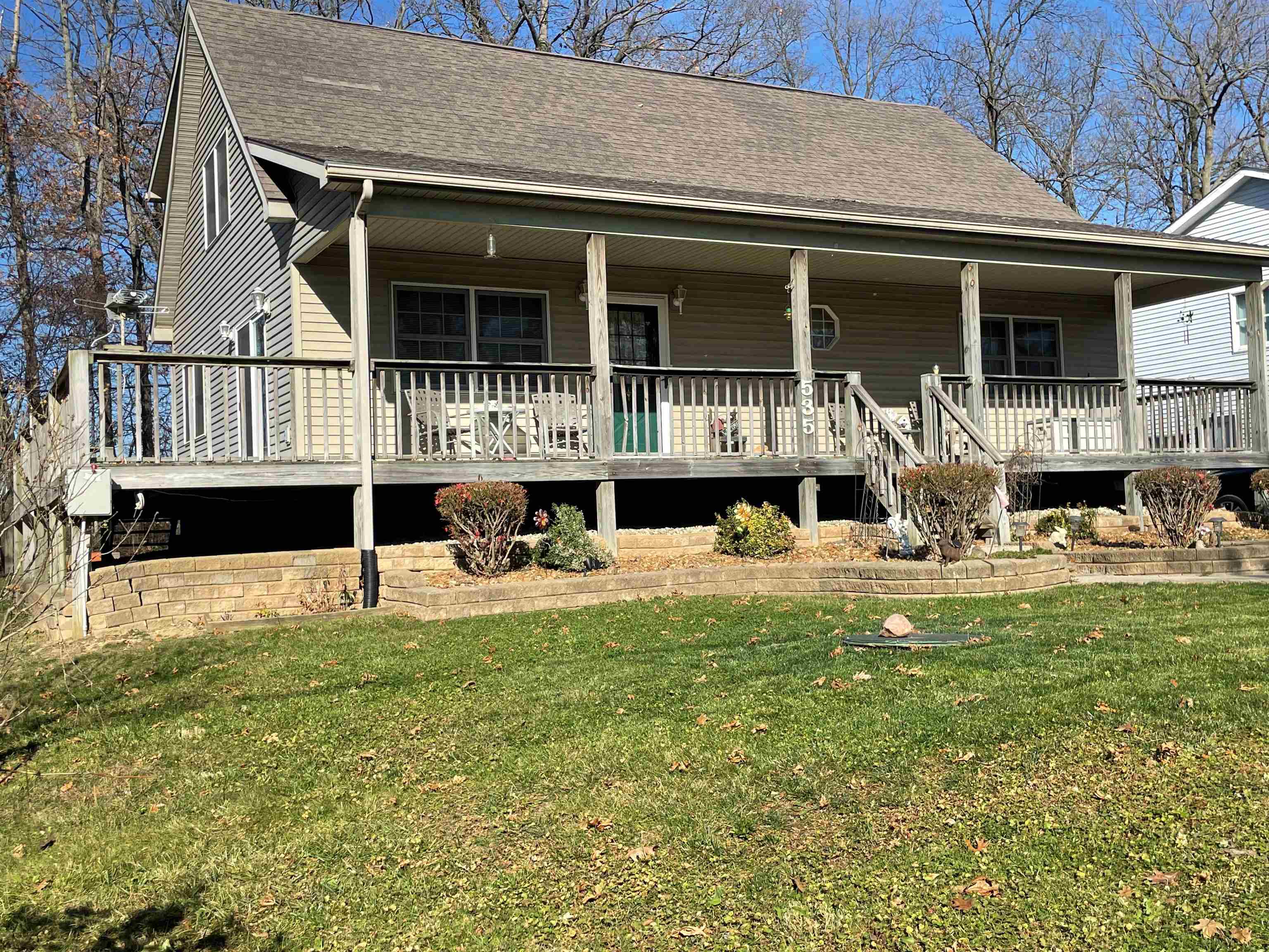Sit on your deck and watch what is happening at the Lake James sandbar. This 3 bedroom 2 bath home has beautiful knotty pine ceilings, open concept kitchen, living and dining area, finished basement with rec room with a great storage room. Has a wrap-around deck, car-port, sheds. No dock/pier rights, just the right to land and park your boat on the shore. Immediate possession! One year home warranty paid for by seller