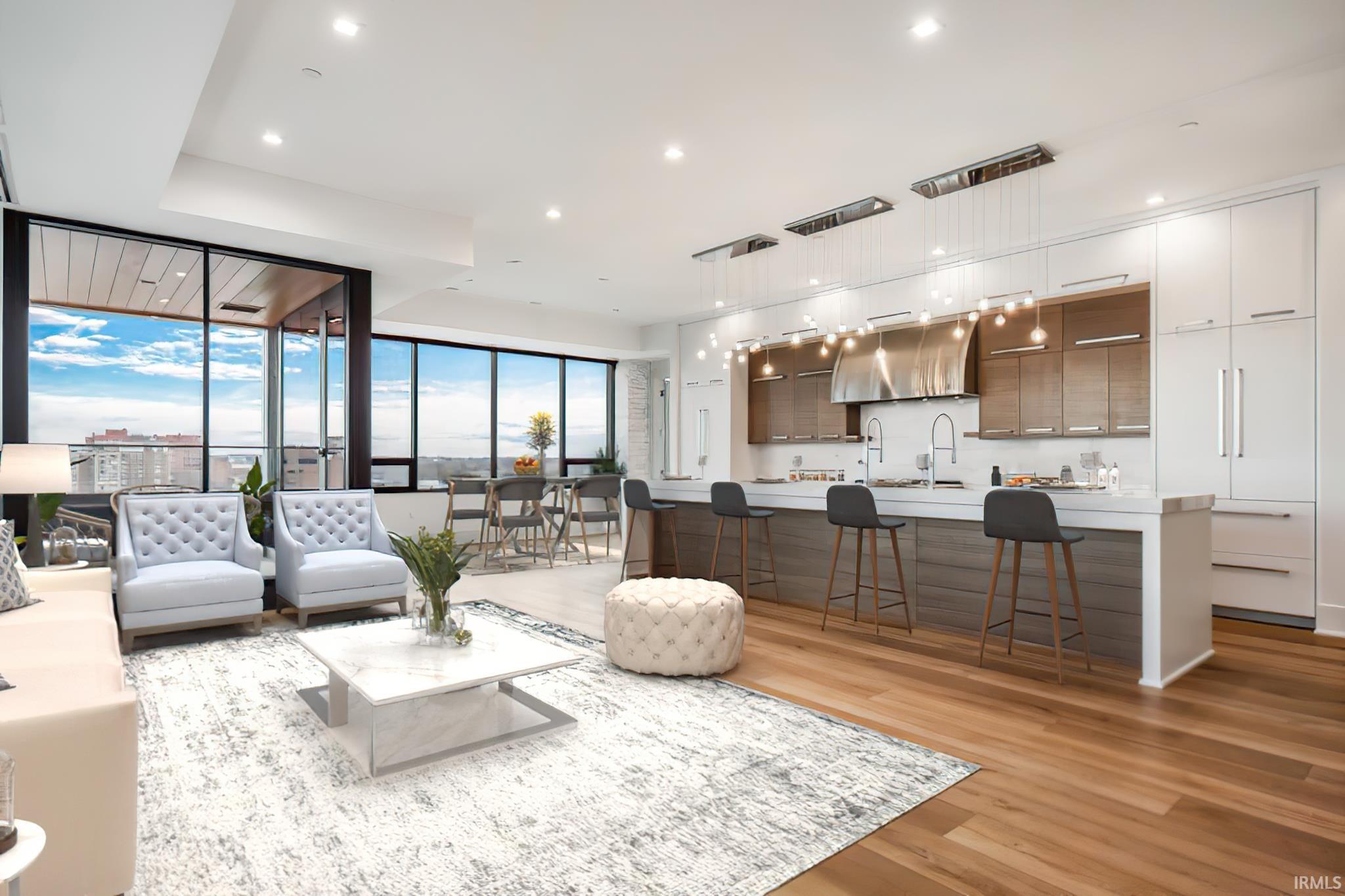 Home was sold as an office exclusive andentered for comp purposes. Welcome to downtown Fort Wayne living at its utmost finest. Masterful design by Frank Souder and quality craftsmanship created by RW Robrock Design-Build are uniquely embodied in this stunning 2 BR, 2.5 bath, 2305 sq. ft. condo located in the Metro Building w/spectacular unparalleled downtown Fort Wayne views from every room, private parking, rooftop patio and amenities, and just steps from The Landing, nationally acclaimed Promenade Park, and award-winning dining. Modern luxury and turn-key ease abounds in every high-end, high-tech detail. Unit #710 boasts spacious rooms w/expansive and stunning skyline views (hello, sunsets!) from every angle, including the new Electric Works project. The chef's dream kitchen was artfully planned and boasts a fleet of high-end professional- grade appliances, premium natural stone finishes, custom cabinetry and swanky butler's area. The bedrooms feature sleek en-suite baths with natural stone, generous closets, tall ceilings, under-vanity lighting and ample storage. Lovely outdoor veranda (facing West!), a generous laundry area, a dreamy half bath, and a large storage room that could double as a private office round out the space. The ultra luxe Urbana condos, located on Floors 7+8 of the Metro Building, feature a shared rooftop space w/grills, pergolas and firepits; priority dispatch elevators; high-tech fitness studio; customizable storage space; private parking and an upcoming bakery and grocery store. A new parking development will feature dedicated parking, an underground walkway to elevator lobby and a wash bay in the lower level. Some photos are virtually staged.