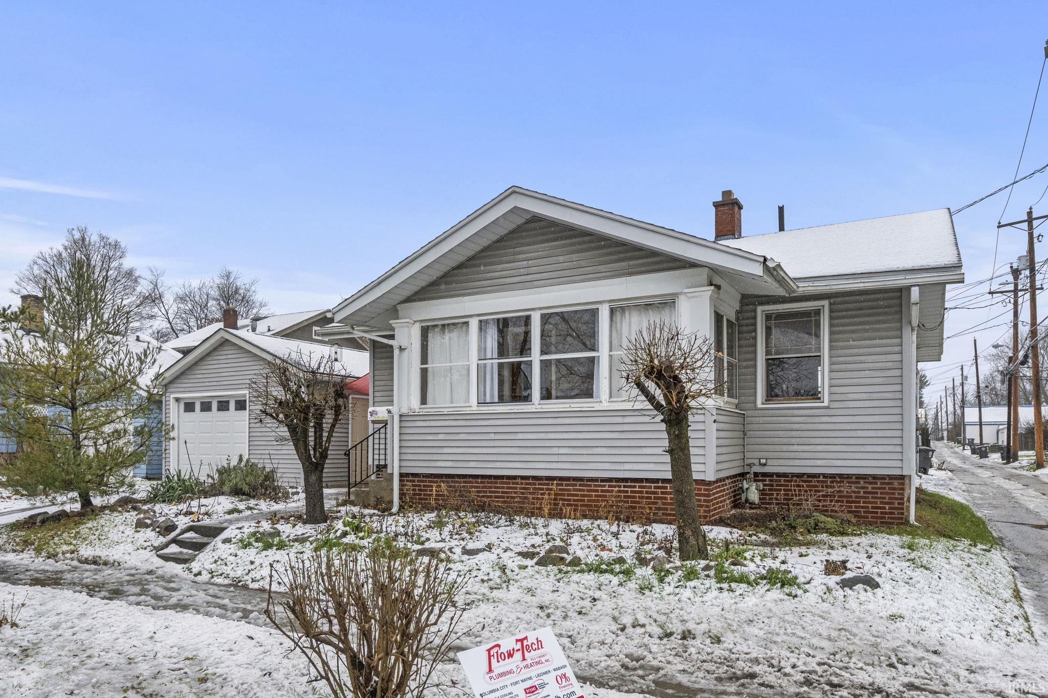 Accepting Backup offers Due to Original Accepted offer not preforming. Cute Bungalow on the West side of Fort Wayne. Two bedrooms, with a jack and jill bath between them. Large living room with original woodwork and hardwood floors. There is a galley kitchen with appliances that remain as well as cute storage cabinets. There is a large dining room off the kitchen. The home has brand new gas forced air, with a backup source of electric heat. The roof is 7 years old, and the exterior is nicely updated with low maintenance vinyl. The basement has storage and a second living area. The outdoor space has two great areas, one a patio with a sunshade and the other is the enclosed front porch. There is a one car garage for off street parking.